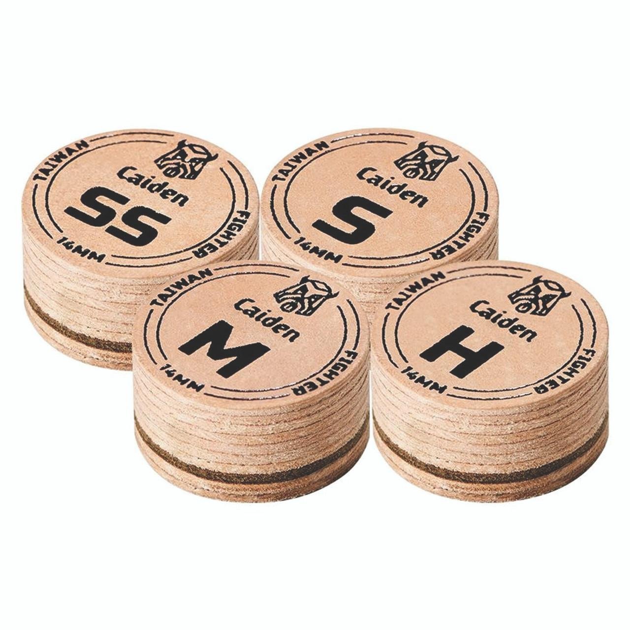 This is a tip to redefine your game! The Caiden Fighter tip is a blend of advanced technology for precision and consistency. This makes for the ideal choice for amatures and professionals alike. This is a tip made of 10 layers of tanned and undyed premium pigskin leather. Provides excellent cue ball spin and control with minimal effort and holds chalk exceptionally well and does not glaze over. More Power, More Spin, More Grip!